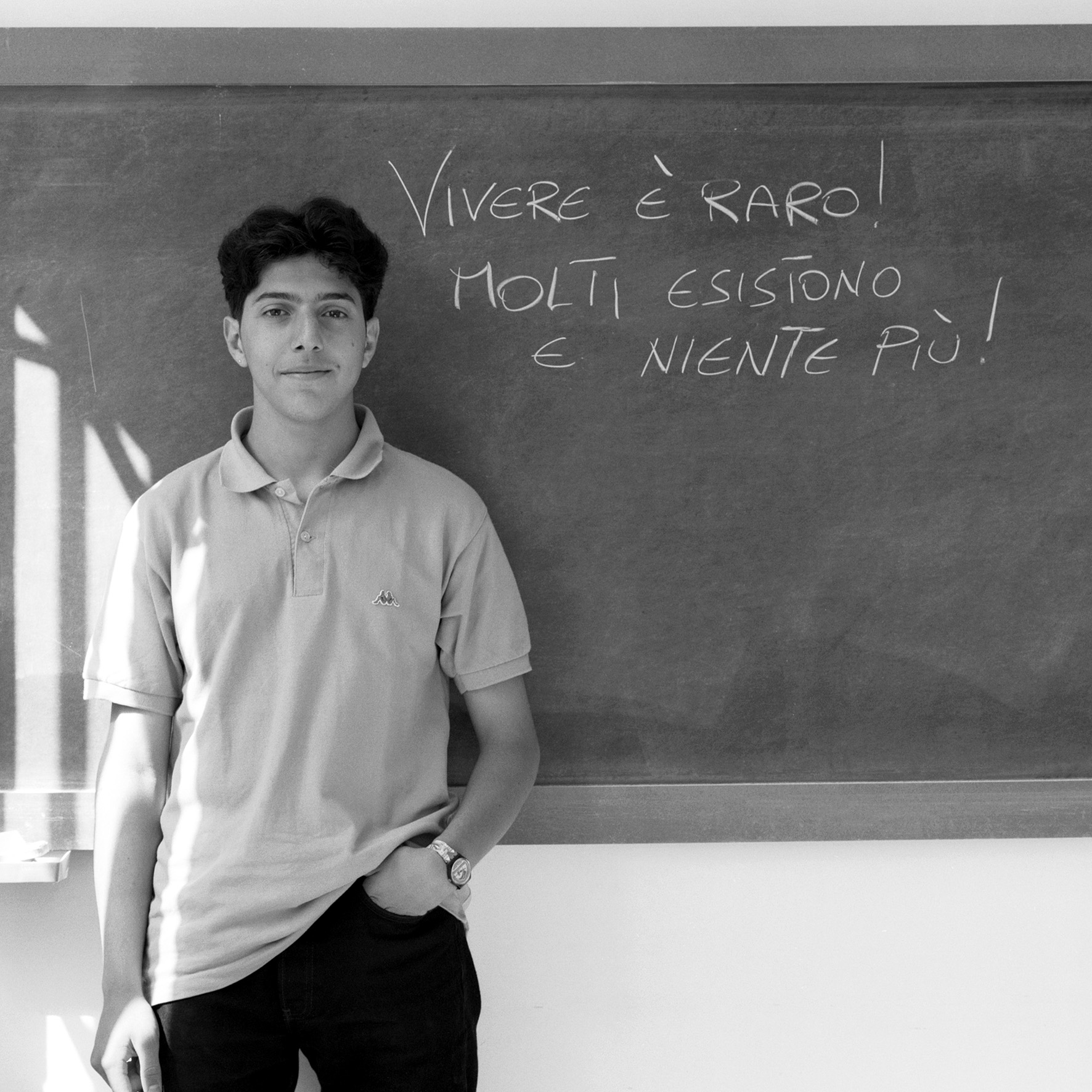 La serie di foto qui presentate, fatte a distanza di anni, è un insieme di segni: il significato delle parole, la grafia, la postura, l’abbigliamento, la fisiognomica, il luogo, gli oggetti. La luce diversa, come diverse sono le persone che si sono prestate.
