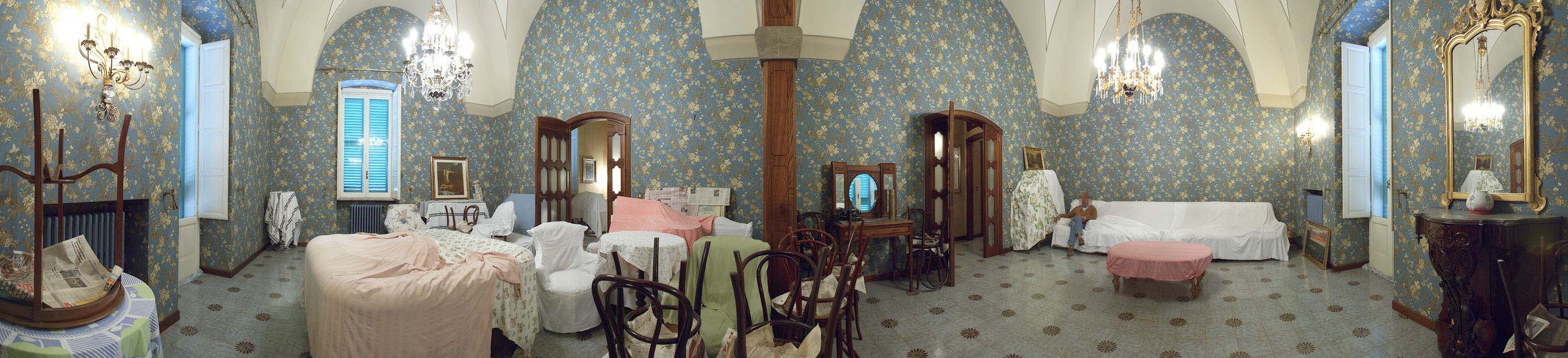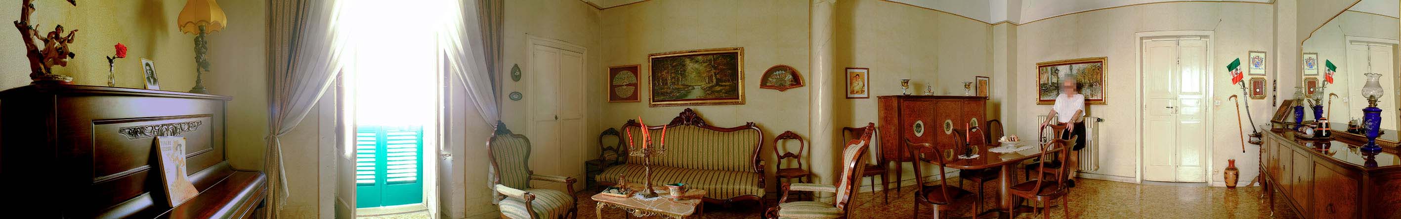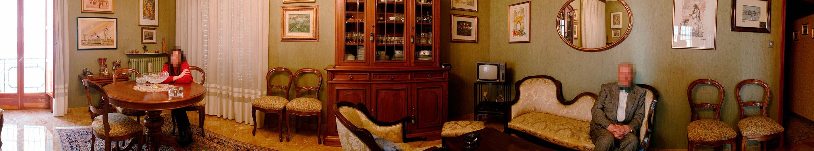 In questa serie ho voluto, grazie ad una particolare tecnica, ritrarre “the men of family” nel proprio ambiente domestico, nell’ambiente della casa dedicato all’incontro, fra sé, ed anche con gli “estranei”, l’ambiente non specializzato a mansioni di vita individuale ( studio, lavoro, riposo, igiene,…) ma riservato all’incontro della famiglia, la stanza in cui ognuno, entrando, non si meraviglia di incontrare gli altri componenti del proprio gruppo familiare. Ambienti che crescono insieme alle persone, che si modificano nel tempo, come il tempo modifica le sembianze delle persone, che finiscono per assomigliare alle persone, così come le persone assomigliano a questi ambienti.